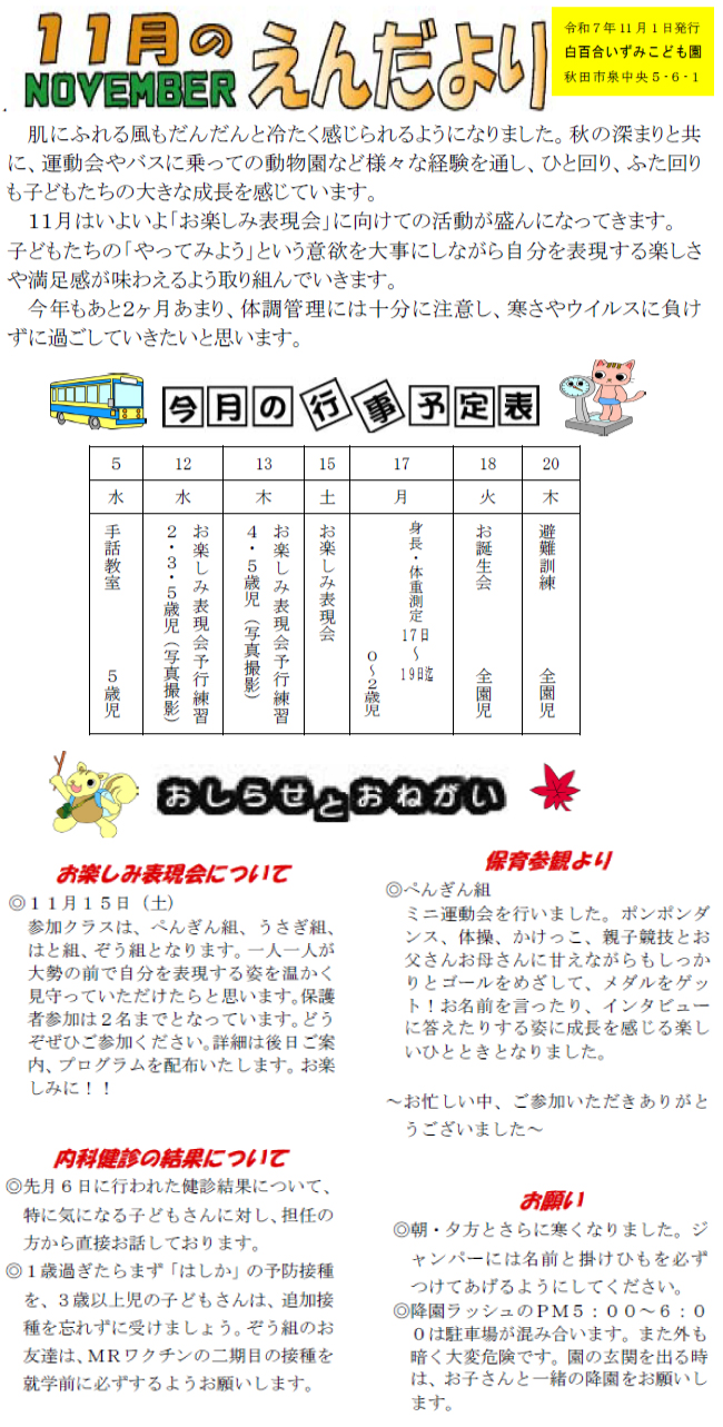 園だより2025年11月