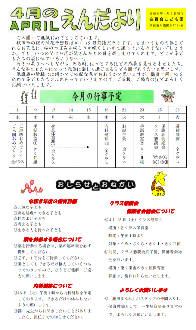 園だより2026年4月